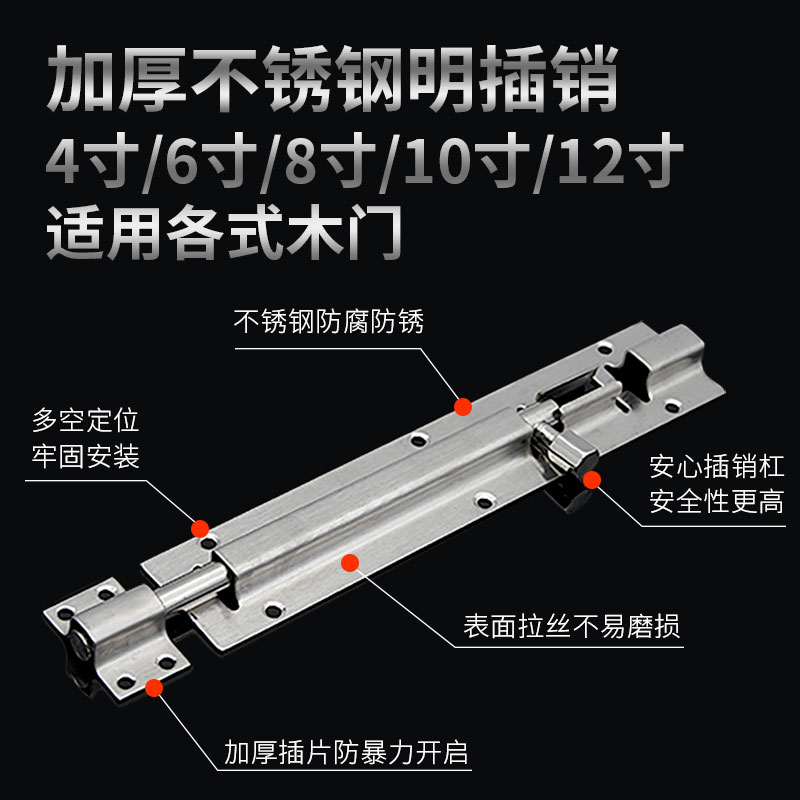 Stainless steel open-mounted latch door bolt lock buckle old-fashioned snap security wooden door thick door bathroom latch