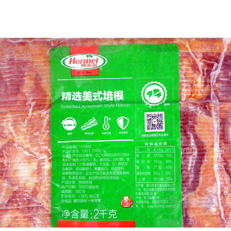 Humel selects American bacon 2kg original slices for breakfast burger sandwich pizza fried smoked bacon slices