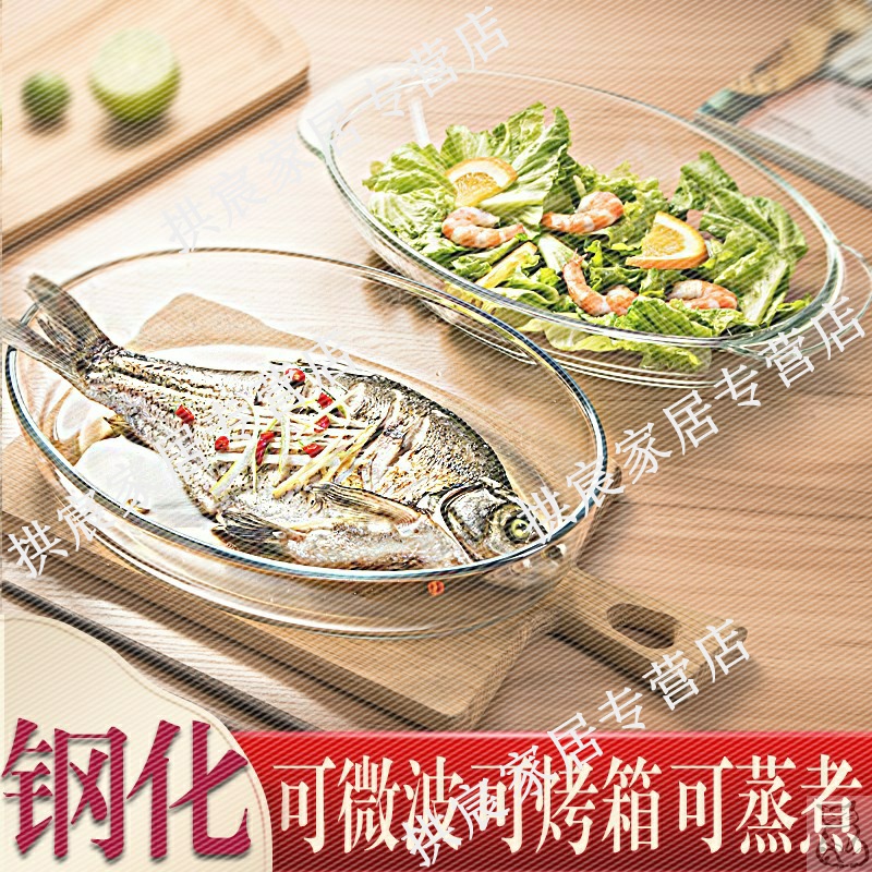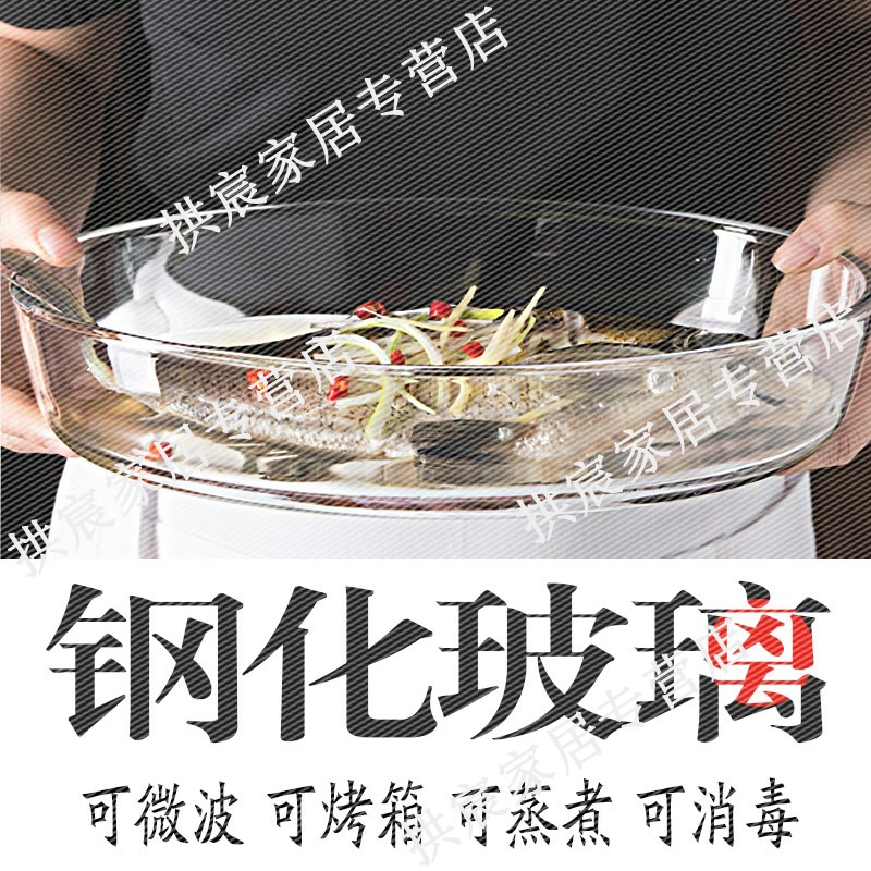 New plate Fish plate Household plate Japanese household transparent glass plate Microwave oven baking plate Steamed fish plate baking