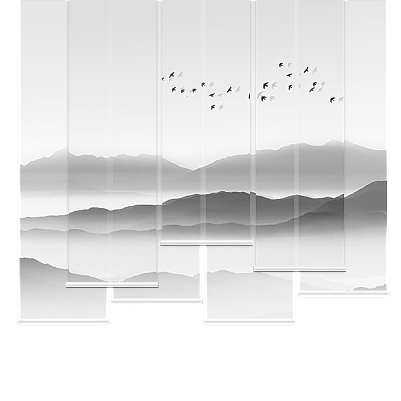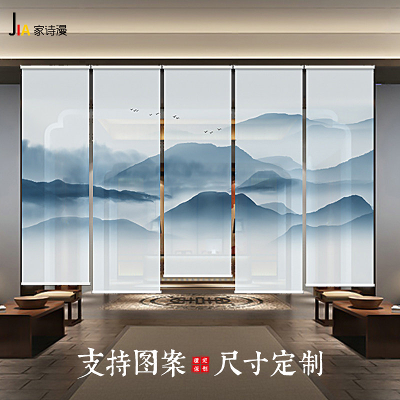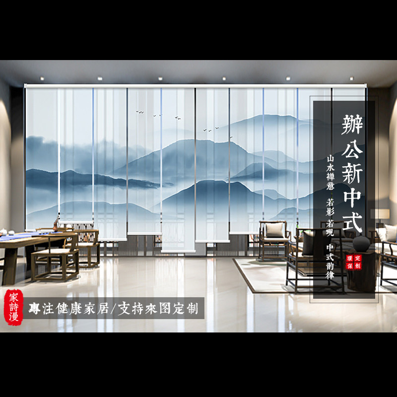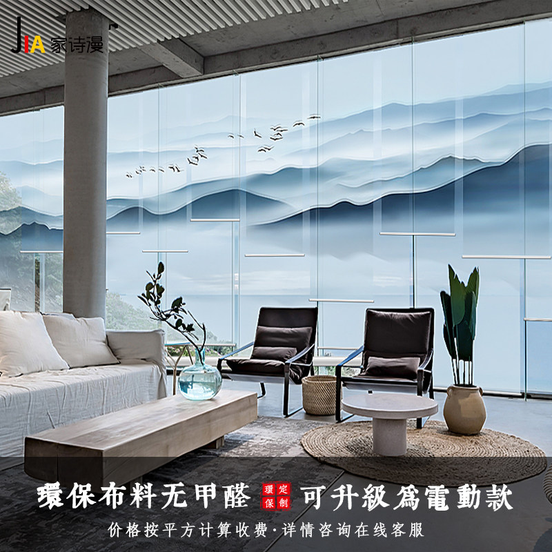 Modern Chinese-style custom roller blinds electric punch-free curtains landscape living room porch blackout soft screen lift partition