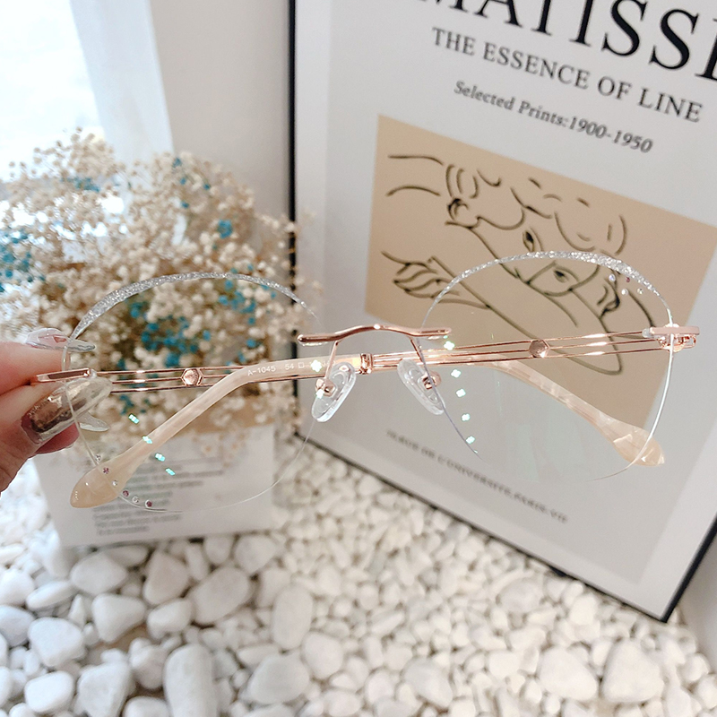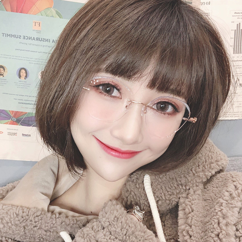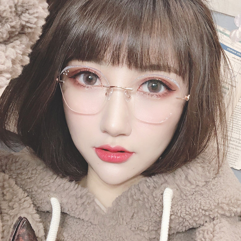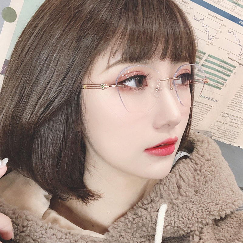Glasses Myopia female can be equipped with degree large face Slim Vegan Color Net Red frame No frame diamond cut edge Korean version wave