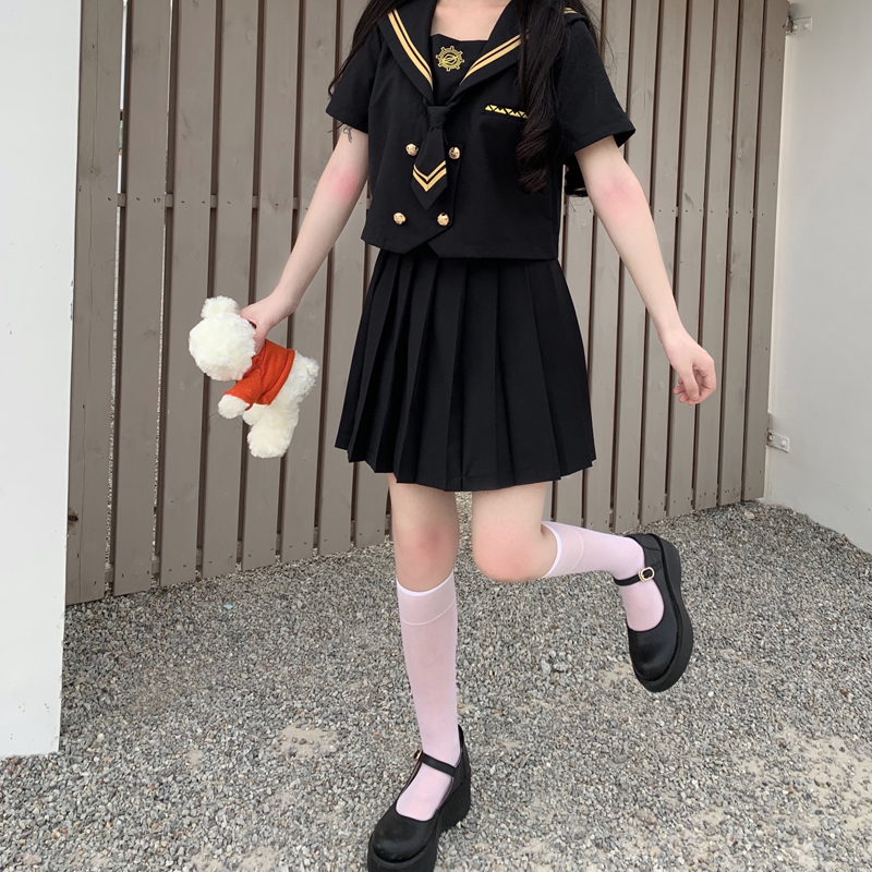 Dark Department Original JK Uniform Genuine College Wind Student Summer Orthodox Navy Collar Sailor Suit Top Two-piece Set