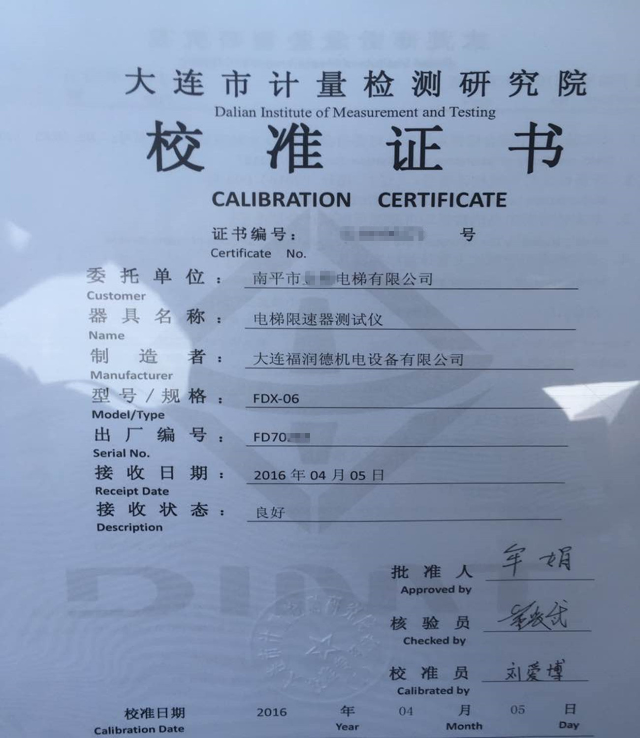 Elevator speed limiter tester Speed limiter tester Photocopy paper calibration certificate Forceps