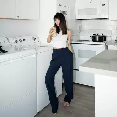 LEIYU suit pants women 2021 hot girl high waist loose straight tube wide pants hanging feeling European and American black casual trousers