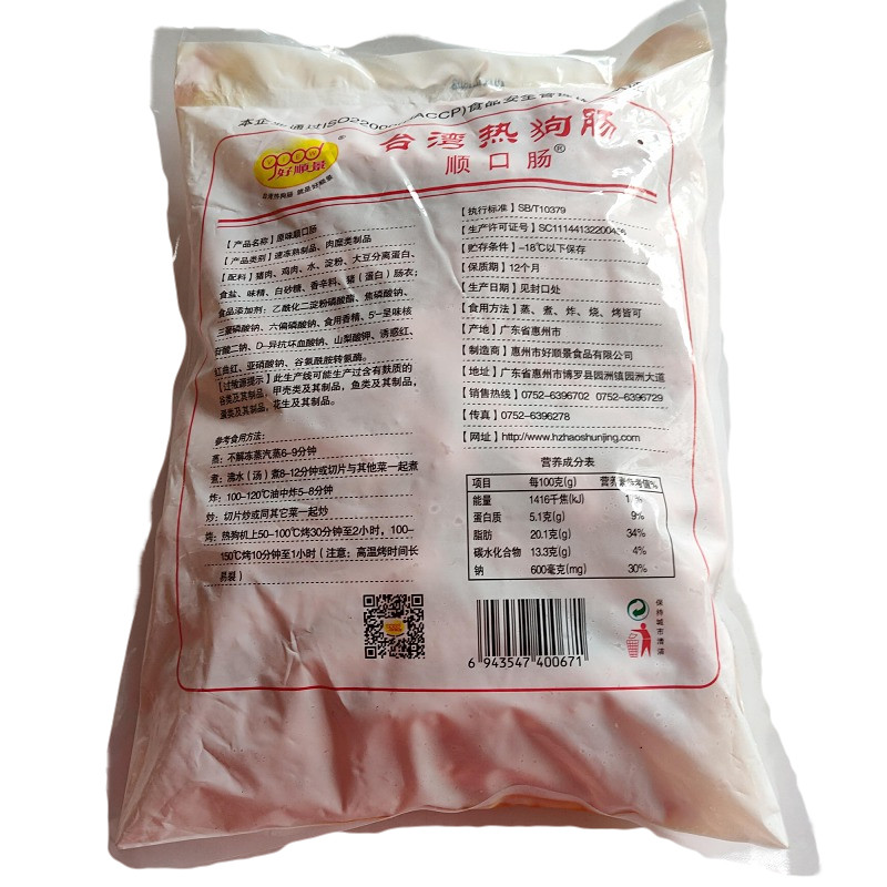 Good Shunching Taiwan Hot Dog intestines Commercial frozen and refreshing Intestine Roast Raw Taste Sausage Breakfast Black Pepper Sausage Packing Semi-finished Products