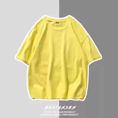 Gangfeng summer solid color round neck loose short sleeve T-shirt men's tide dress trend style ins tide loose casual interior clothing