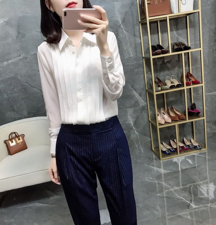 2022 New shirt large size women fat mm professional snow spinning shirt and Korean edition loose long sleeve tie to work suit