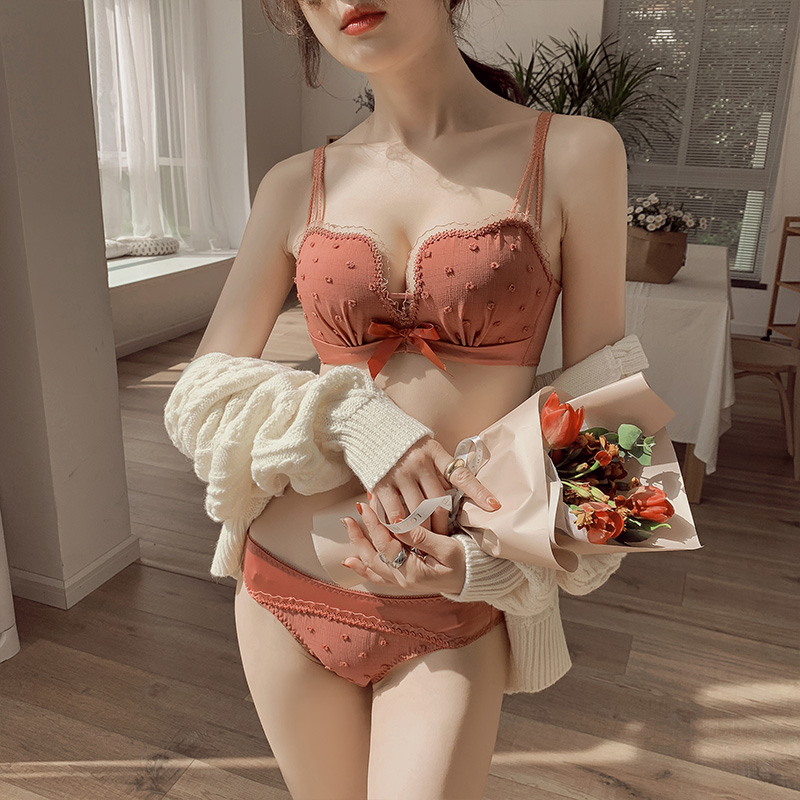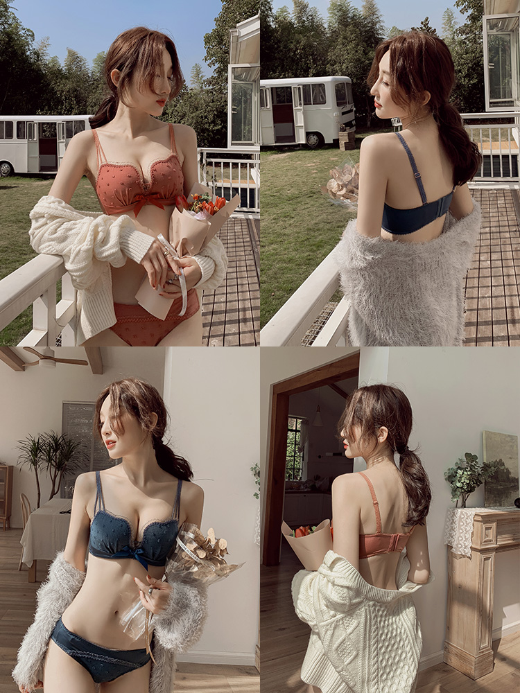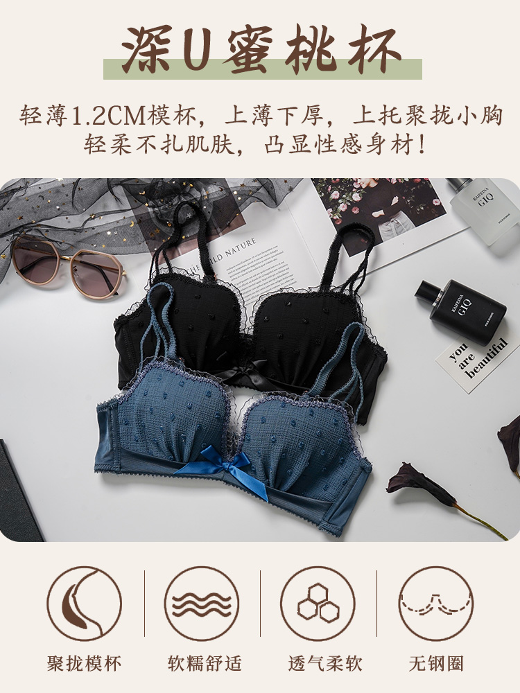 Upper and thin lower thick sexy lace underwear for young girl small breasts to gather without steel ring comfortable and breathable adjustment type lingerie suit