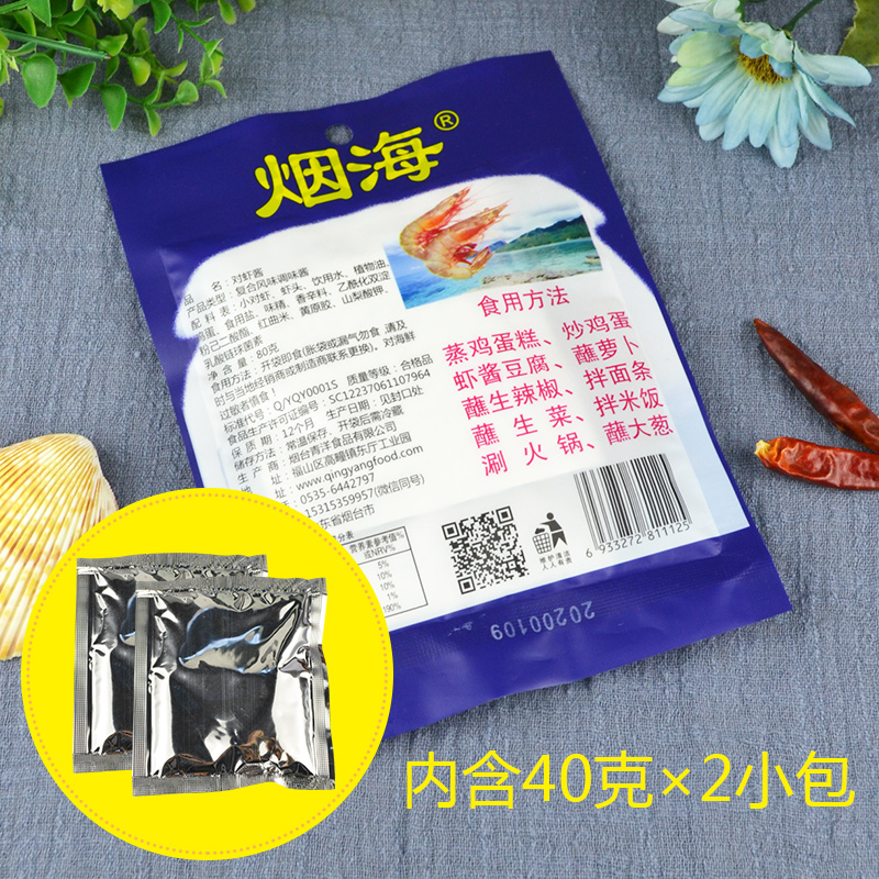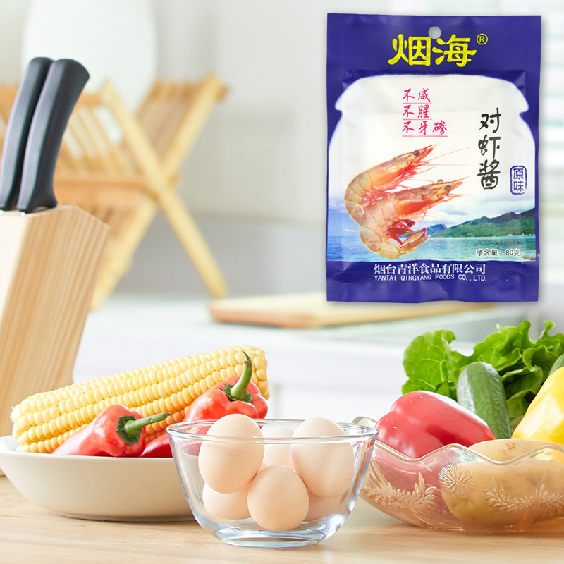 Prawn sauce shrimp paste Yantai Qingyang Smoke Sea shrimp sauce independent packaging instant 80g whole box 40 bags