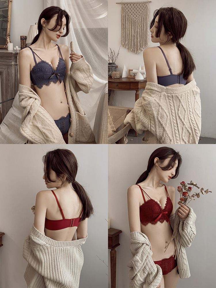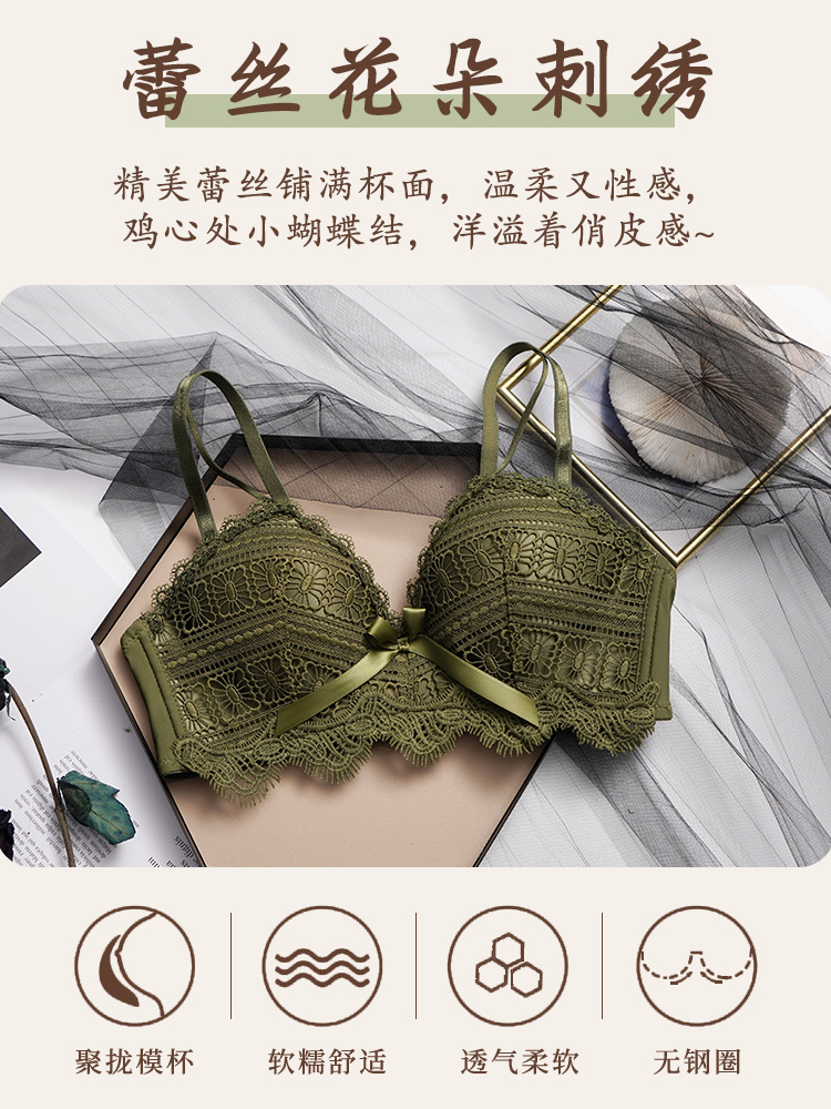 Underwear Women No Steel Ring Closets Breast small bra Polymers Comfort Breathability Sensation Lace Anti Saggy Underwear Suit
