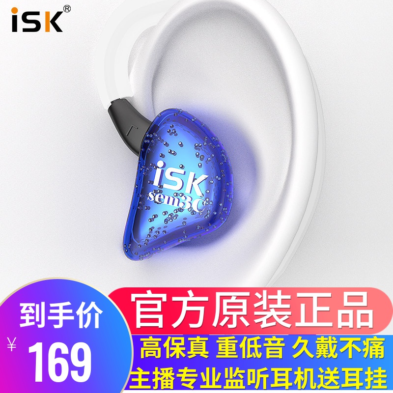 ISK SEM3C headphones in ear style HIFI high fidelity live broadcast professional listening noise-reducing earplugs 2 5 m long cable