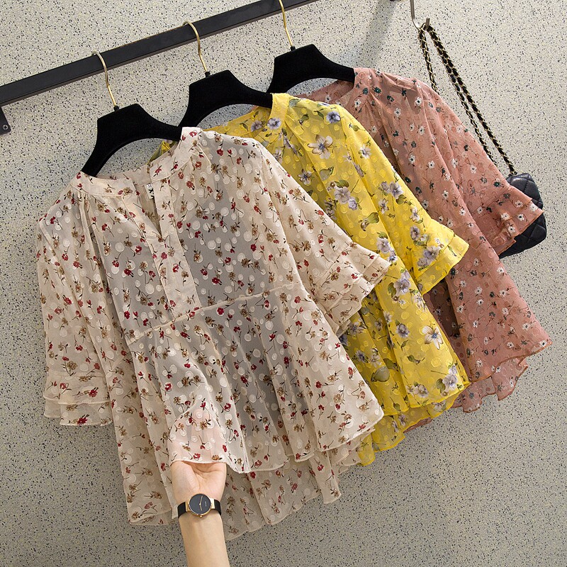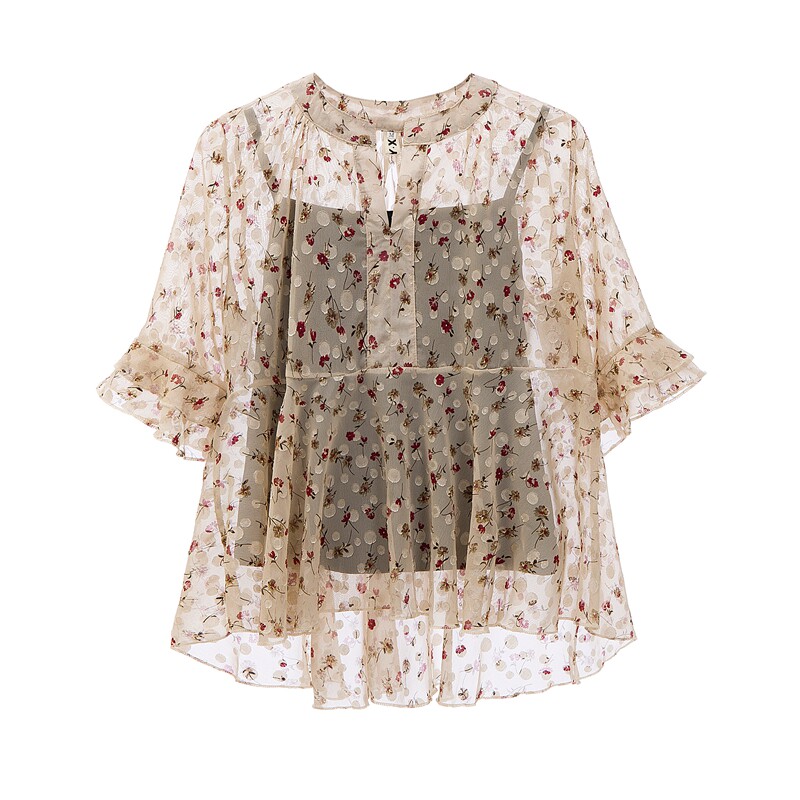 South Korean crushed snow-spinning blouses female short sleeves 2022 Summer Korean version of the new loose foreign pie cardiovert snow-spinning shirt