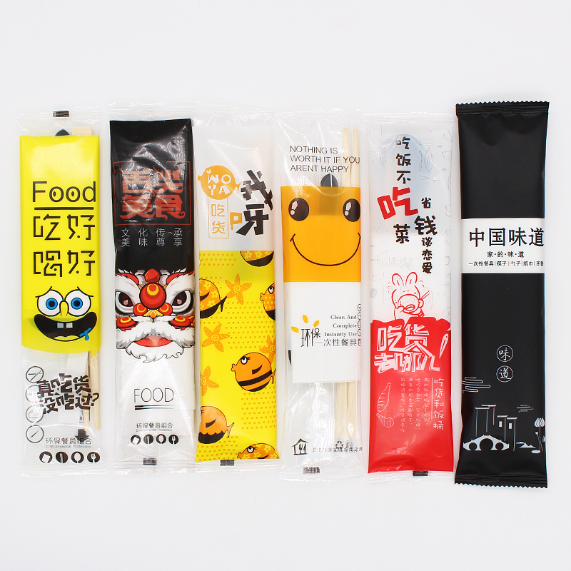 Four sets of delicious black spoon 100 sets of chopsticks spoon toothpick paper towel