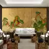 New Chinese living room gold leaf landscape hand-painted folding partition Hotel club office entrance Paint painting screen customization
