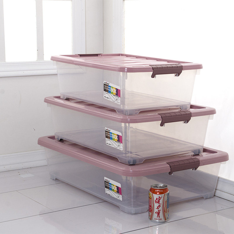 Transparent box under bed with pulley flat storage box laundry box bottom storage box plastic extra-large underwear