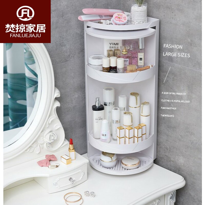 Bathroom rotating triangle shelf Suction wall plastic storage finishing rack Kitchen bathroom dustproof storage cabinet corner rack