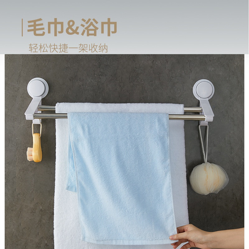 Punch-free towel rack Carabao suction cup Makeup Room Bath Towel Rack Hook Bathroom double-pole towels Toilet Shelf