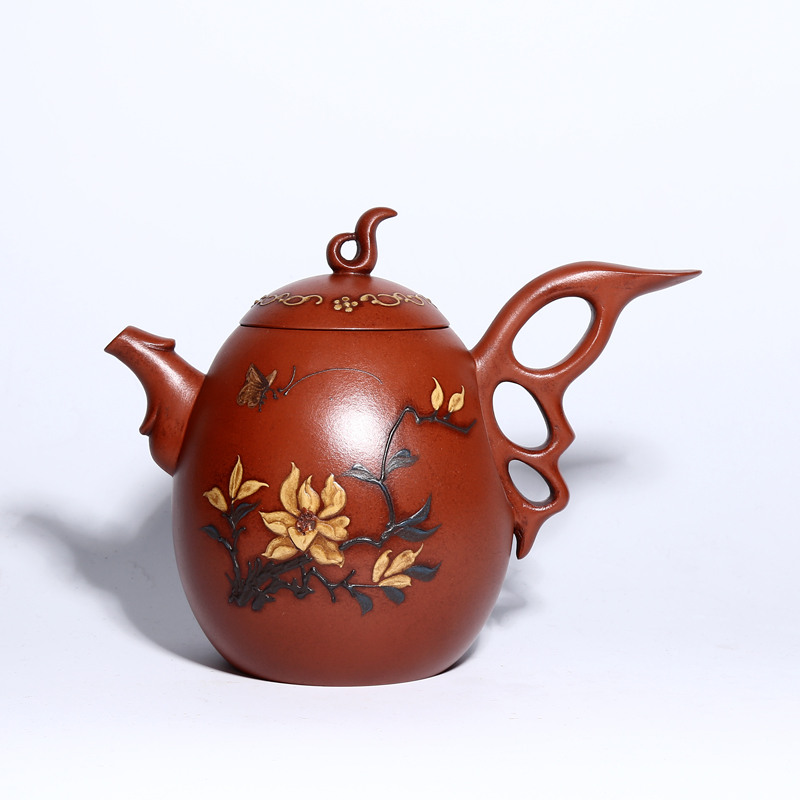 Early one factory, Taiwan returning purple sand old pot famous Jiang Rong whole handmade original mine old red mud color butterfly pot