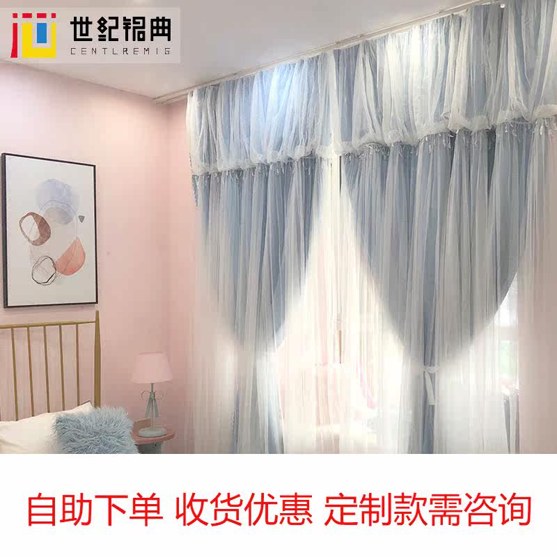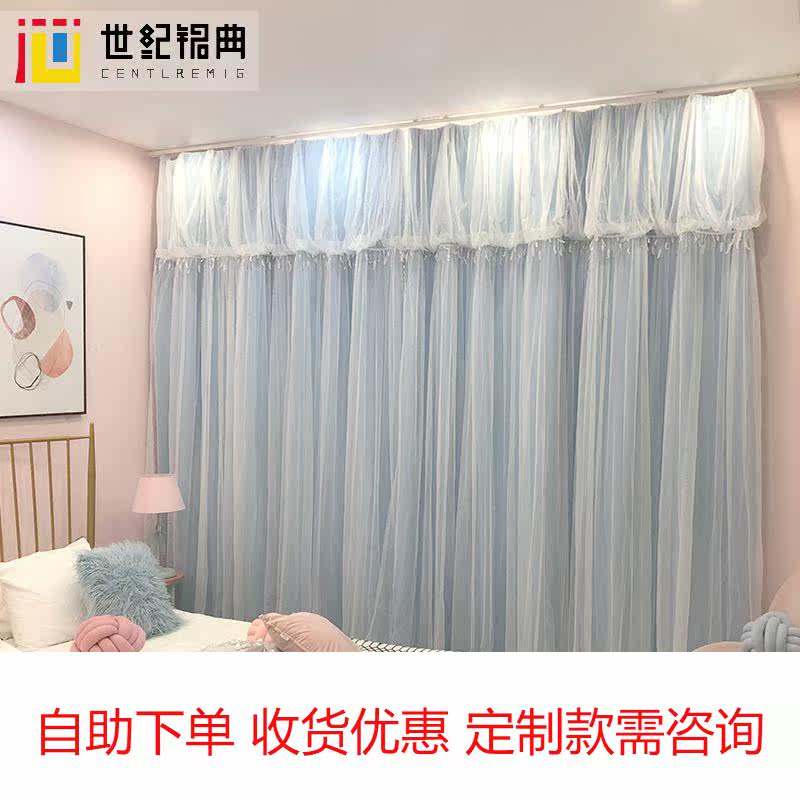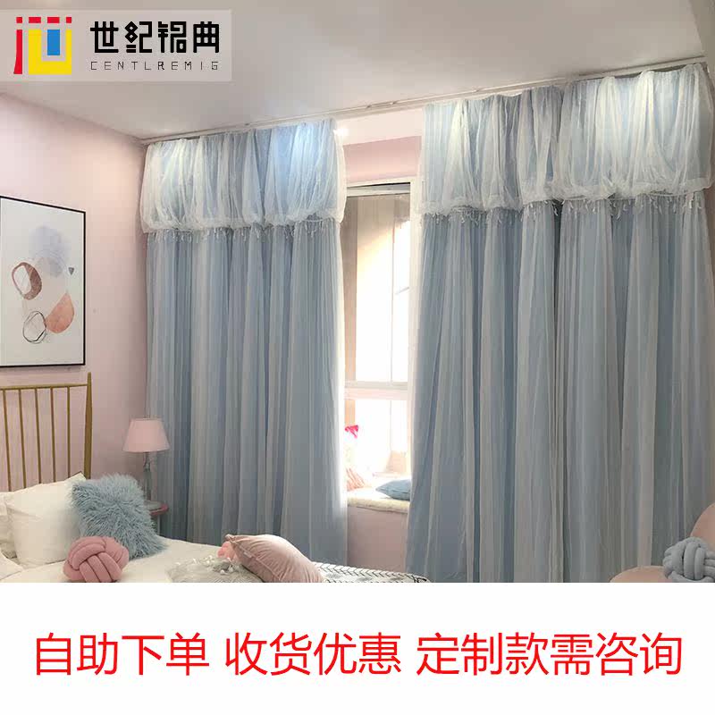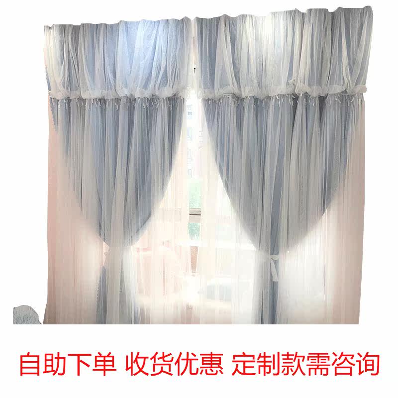 ins net red curtain warm full blackout lace male economical and strong bedroom girl curtain simple double-layer finished product