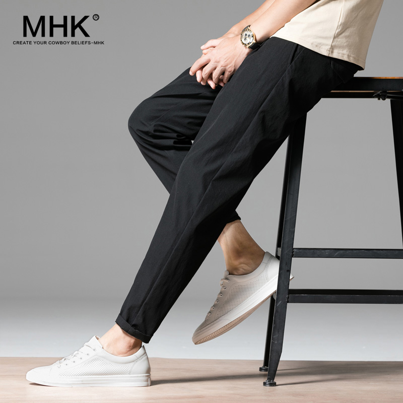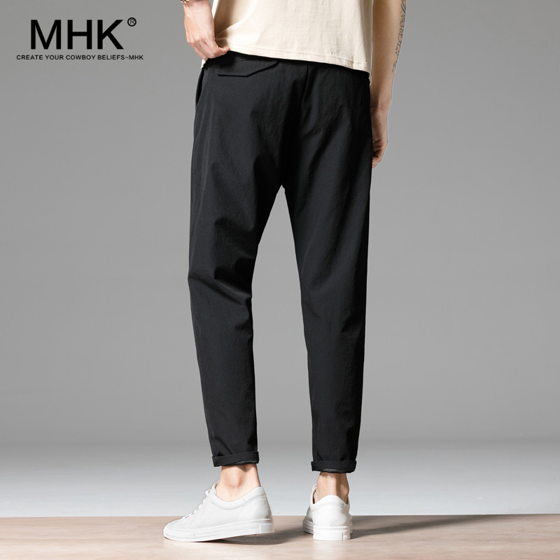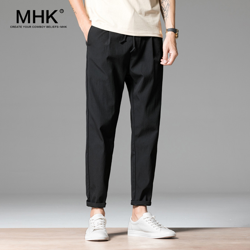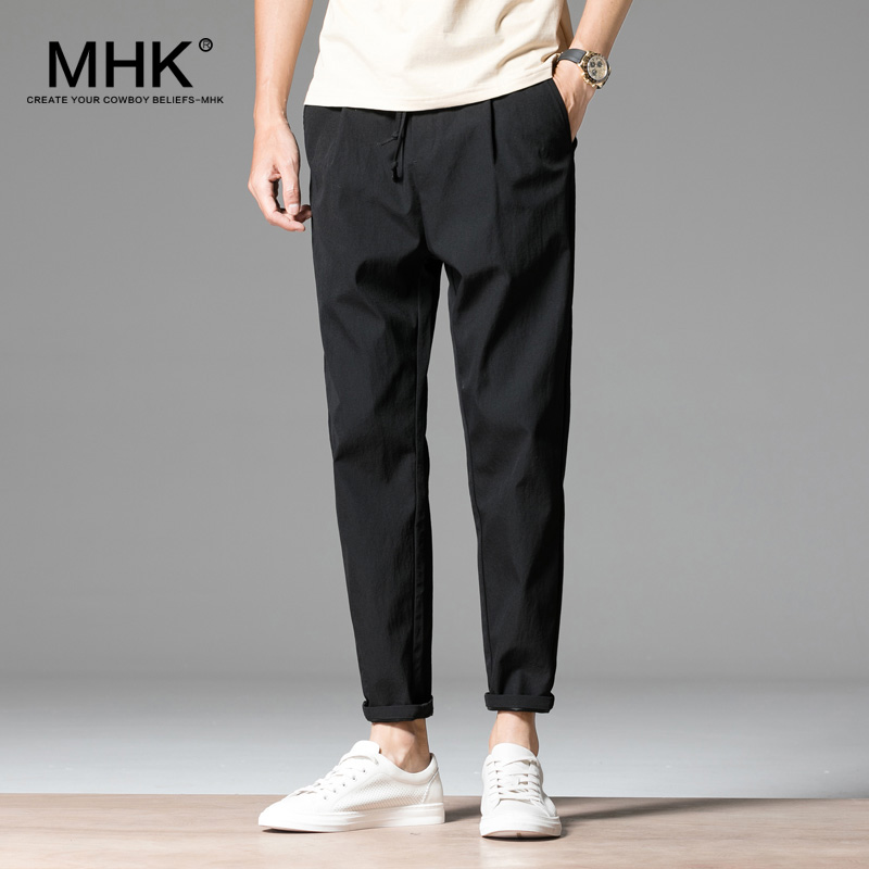 mhk pants men's summer thin men's casual pants loose nine-point pants Korean version of the trend of all-match ice silk trousers black