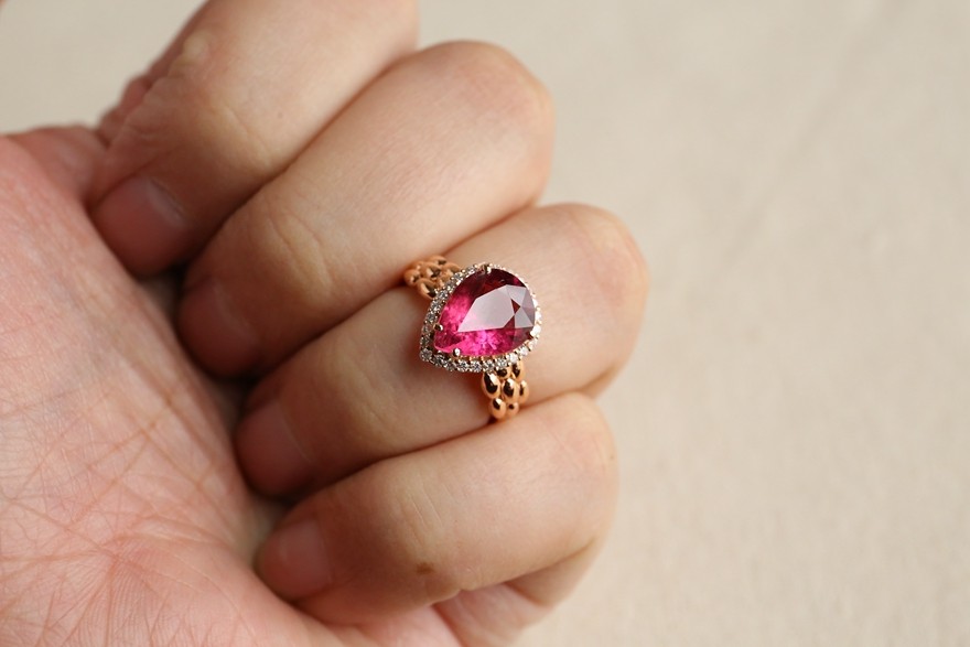 3 25-carat Ruble tourmaline ring with one-cent diamond set in 18k gold weighing 3 14 grams