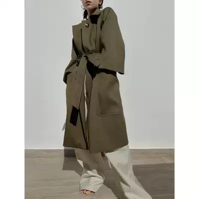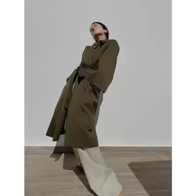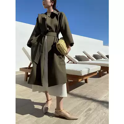 taupe store profile waist big sense three-dimensional twill temperament commuter windbreaker jacket medium and long version of retro green