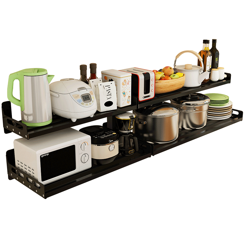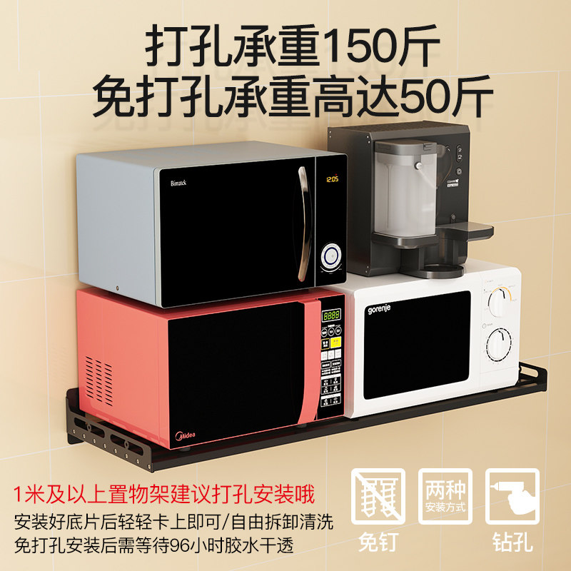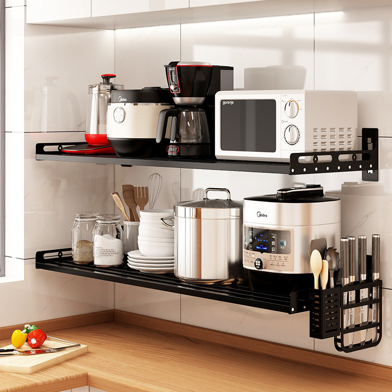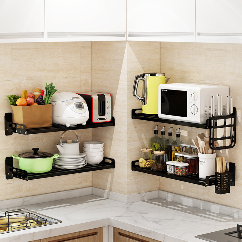 Stainless steel tube perforated kitchen shelf wall mounted microwave oven hanging wall spice storage bracket