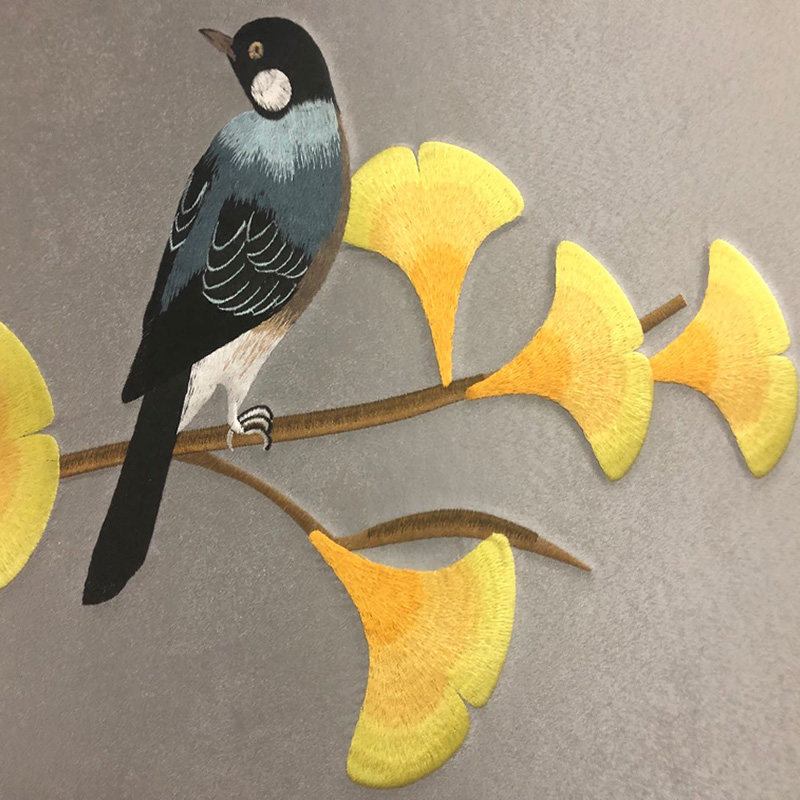 Custom embroidery hard bag background wall fabric silk embroidery new Chinese embroidery background wall three-dimensional bedside sofa light