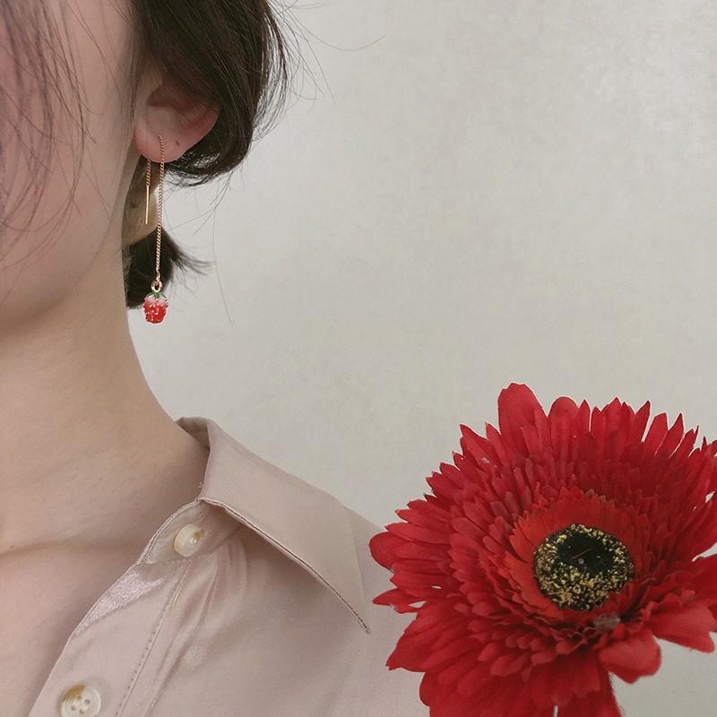Long version of tassel cute strawberry earrings female summer ins fashion all-match thin earrings 2022 new trendy earrings - Taobao