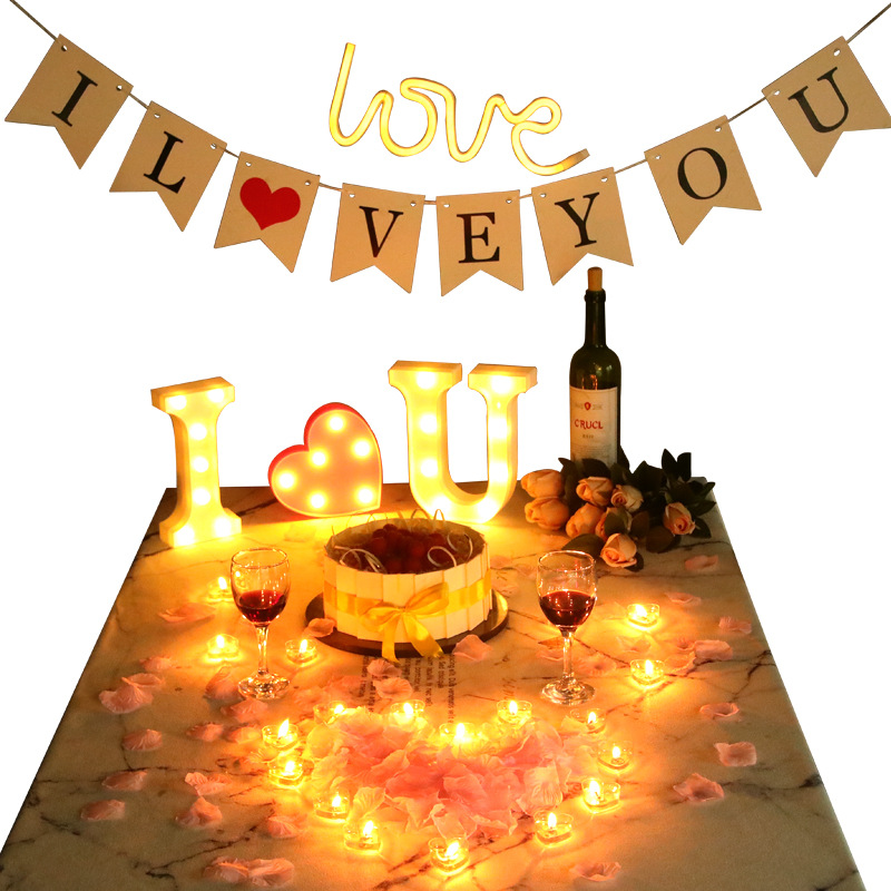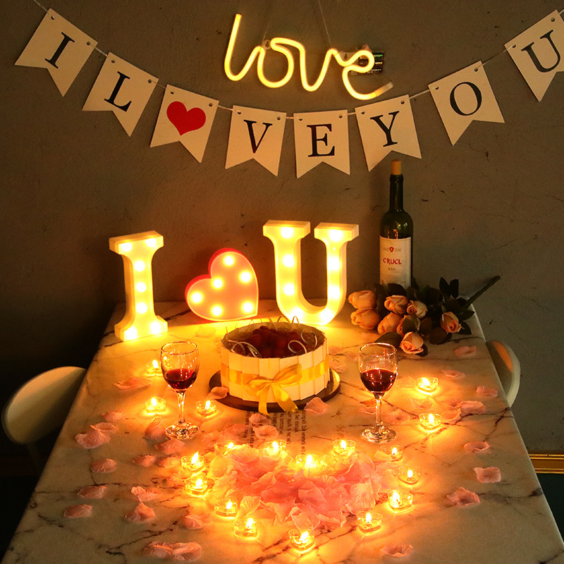 Alphabet lamp candlelight dinner proposal props decoration Tanabata candles romantic confession scene bar birthday layout
