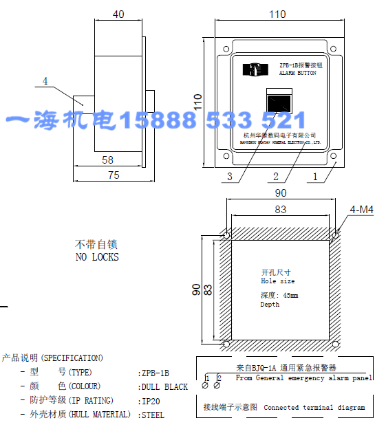 Huanyan Marine ZPB-1B Iron Alarm Button Universal Emergency Hand Report Button Siren embedded IP20