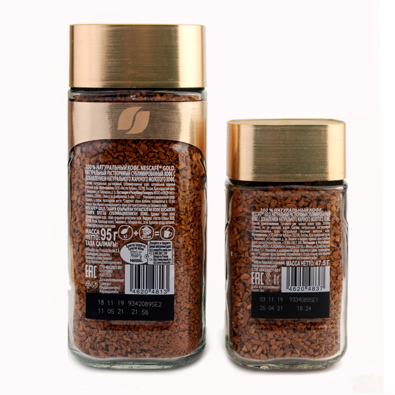 Goldnestlé 47 5 gr bottled one gold nestled 95 gr bottled one gold nestled 47 5 gr 2 bottles of coffee spoon gold nestled 95 gr 2 bottles of coffee spoon Coffee master's sister 85 gr a bottle of Uganda