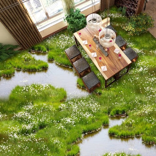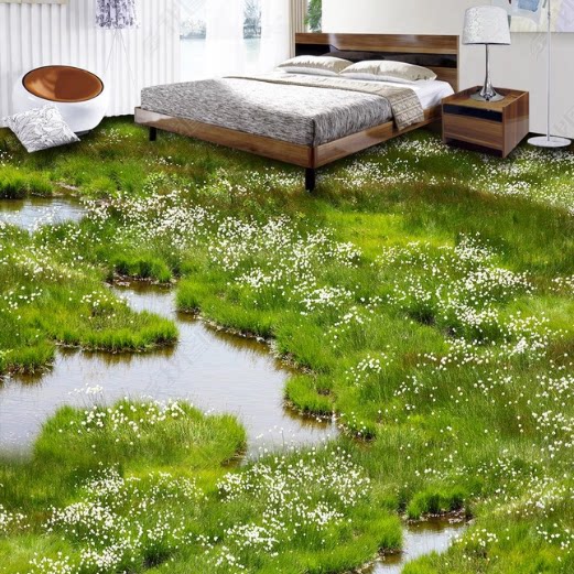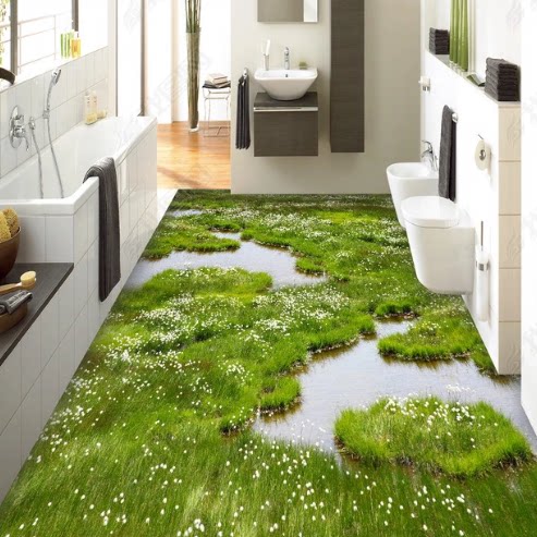 3D three-dimensional floor leather custom floor stickers Living room bathroom floor decoration Floor stickers Floor tiles stickers waterproof grassland