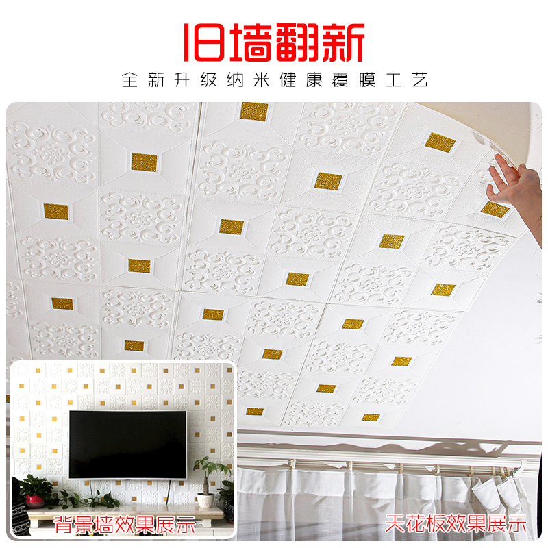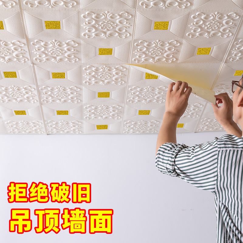 3d Solid Foam Wall Sticker Soundproof Bedroom Cozy Decorated Wall Paper Self-Glued House Ceiling Suspended Ceiling Room Wallpaper