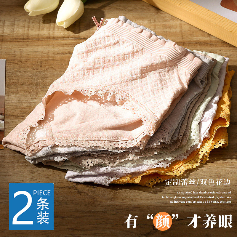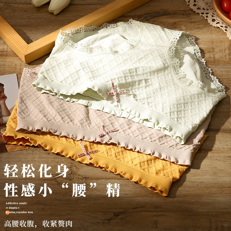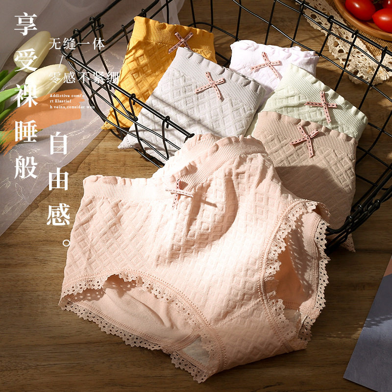 Day Ensemble Seamless Briefs butterfly knot Large size pure cotton crotch waist lady Breathable Triangle Pants High Play No Mark Lace Side