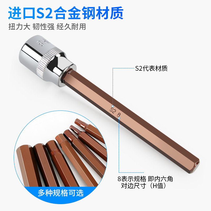 Hexagon socket head S2 hexagon batch head Zhongfei inner 6 corners extended 110mm screwdriver head sleeve wrench hardened
