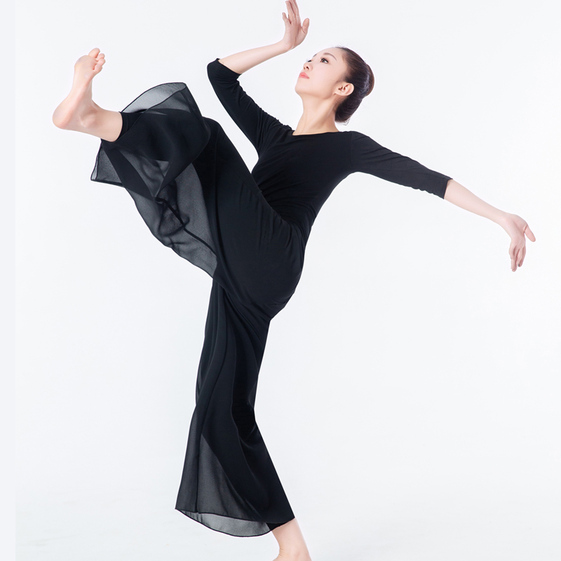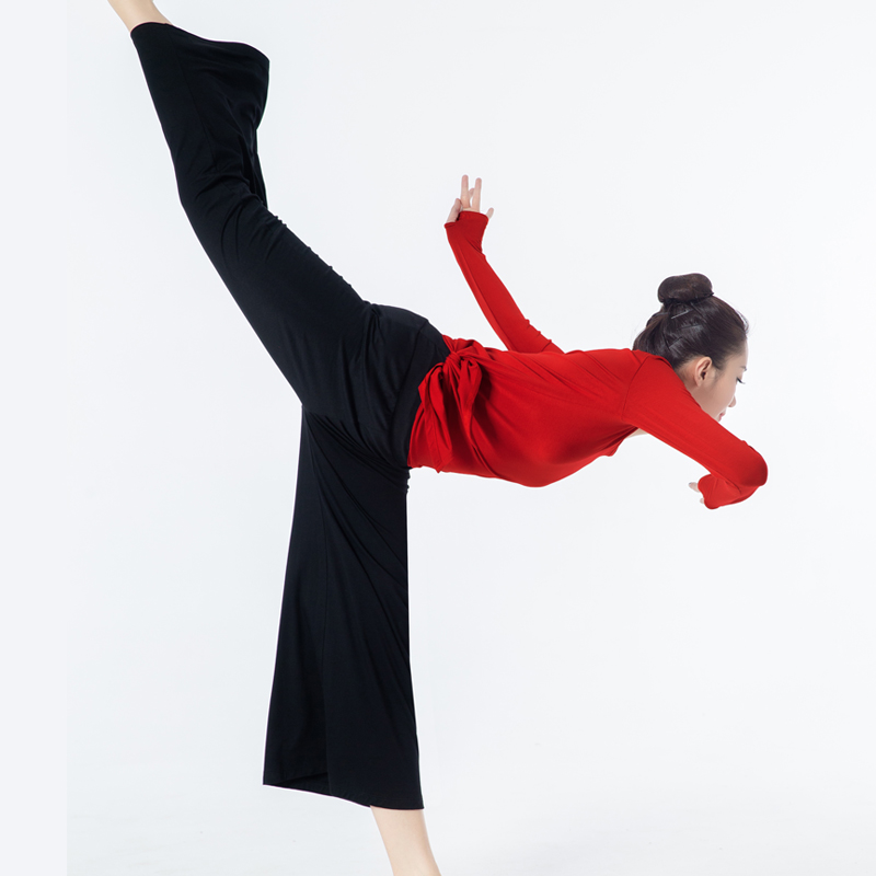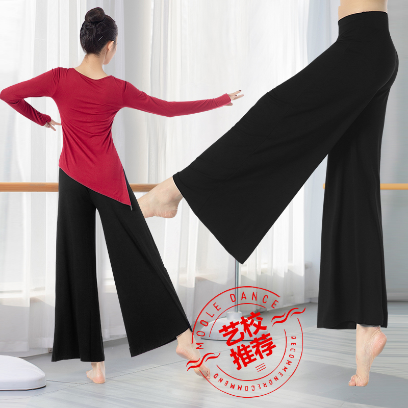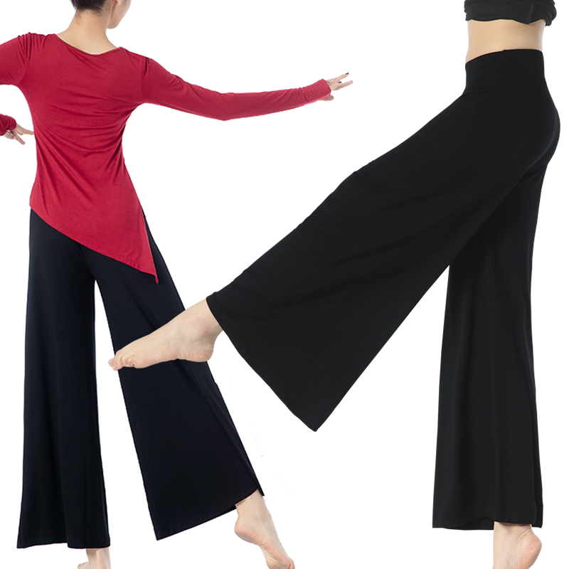 Dance wide leg pants female modal body mesh classical loose horn practice black high waist modern dance pants