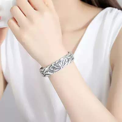 Suzhou silver building Yunnan 999 snowflake silver bracelet has more than a year vintage carved solid opening silver jewelry to send mother