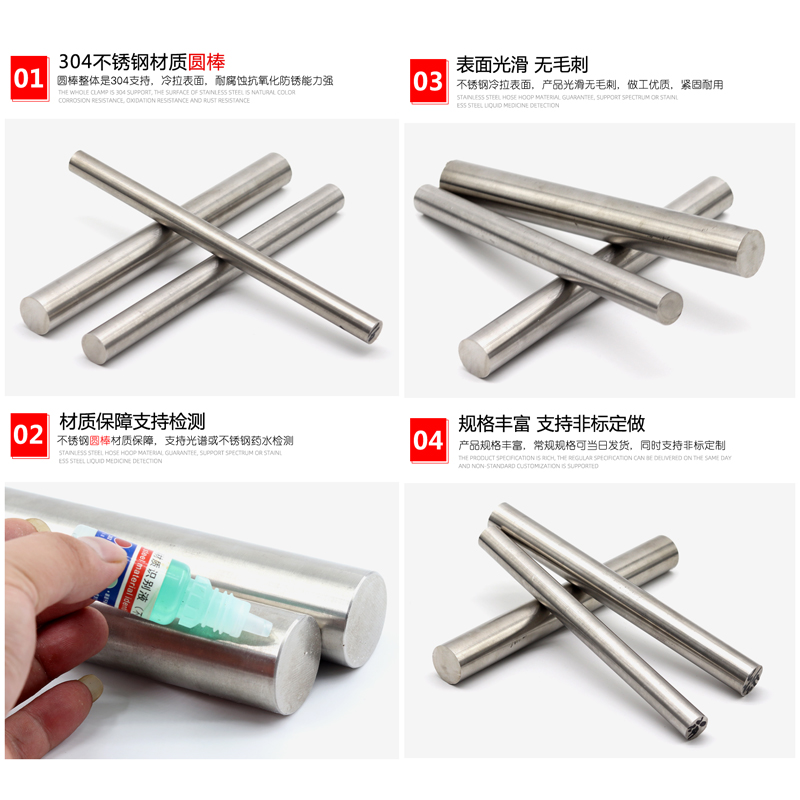 Stainless Steel Rod 304 Solid Steel Rod Light Round Steel Stainless Steel Round Bar Optical Axis Round Bar Straight Strip Zero Cut Machining