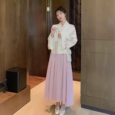 Lan language large size women's autumn new fat sister mm Chinese style improved Hanfu suit temperament age three-piece set
