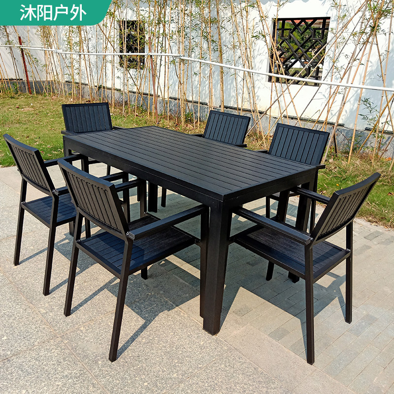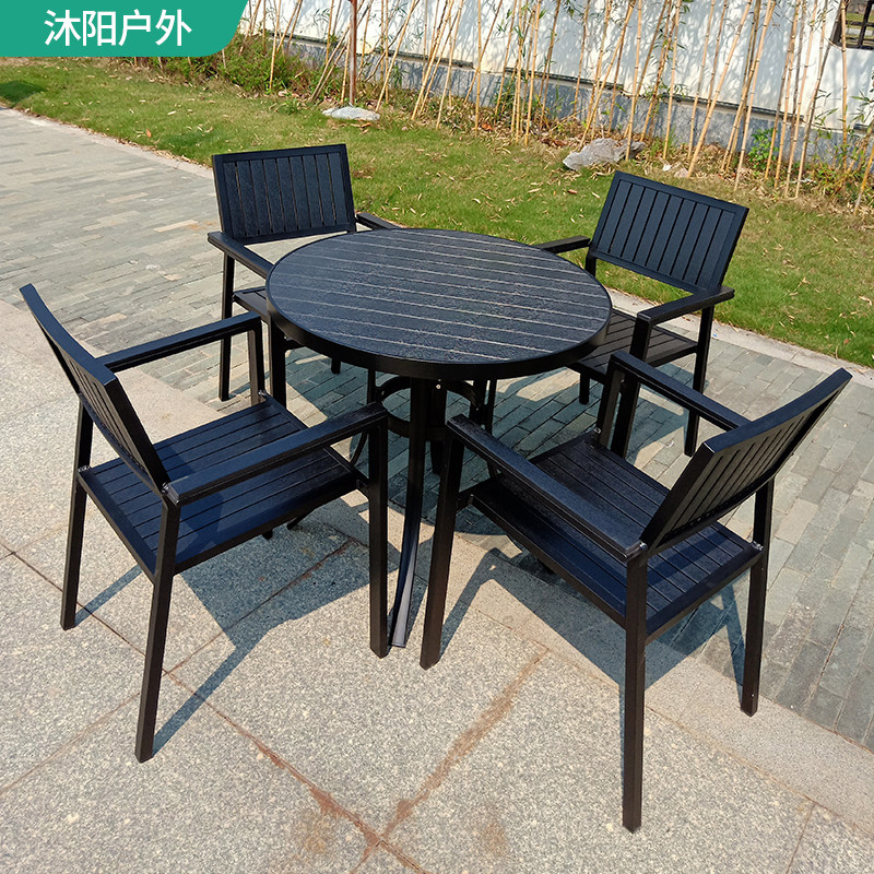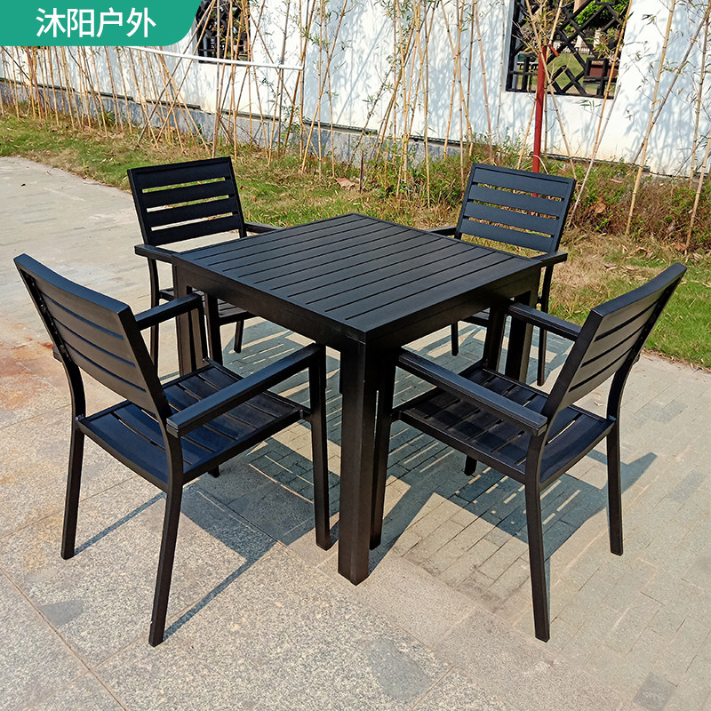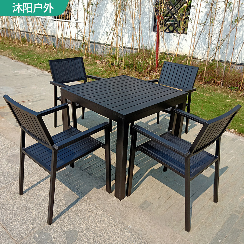 Outdoor aluminum alloy tables and chairs combined casual café outdoor open-air balcony garden anti-corrosion wood and chair