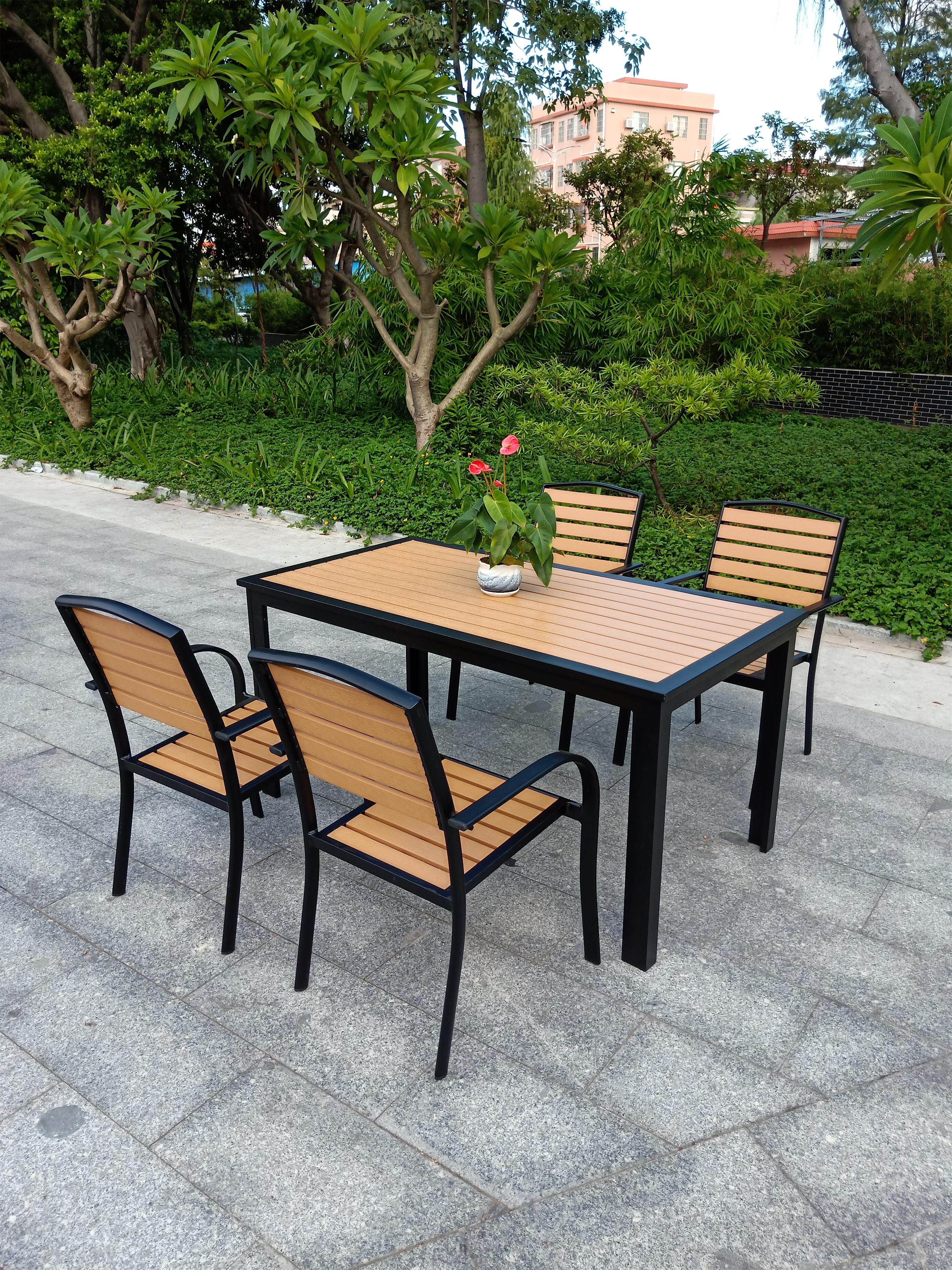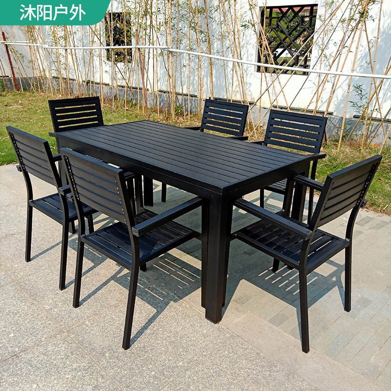 Custom outdoor leisure anti-corrosive wood plastic wood aluminum alloy balcony method minimalist modern open air patio courtyard table and chairs