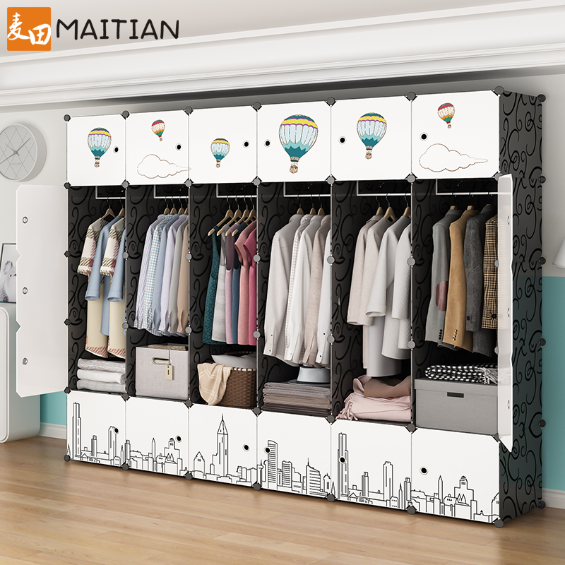 Simple wardrobe fabric assembly hanging household rental plastic storage storage cabinet bedroom modern minimalist wardrobe