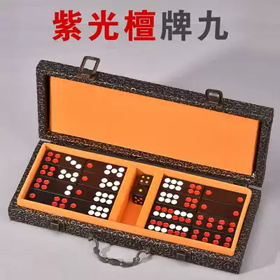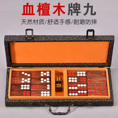 Laos big red sour branch Pai nine brand black sandalbone Tianjiu wood carving business gift box chess and card hand made