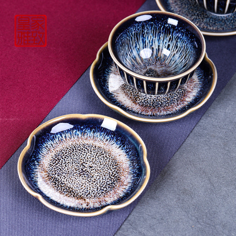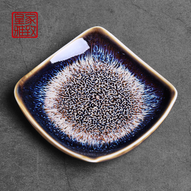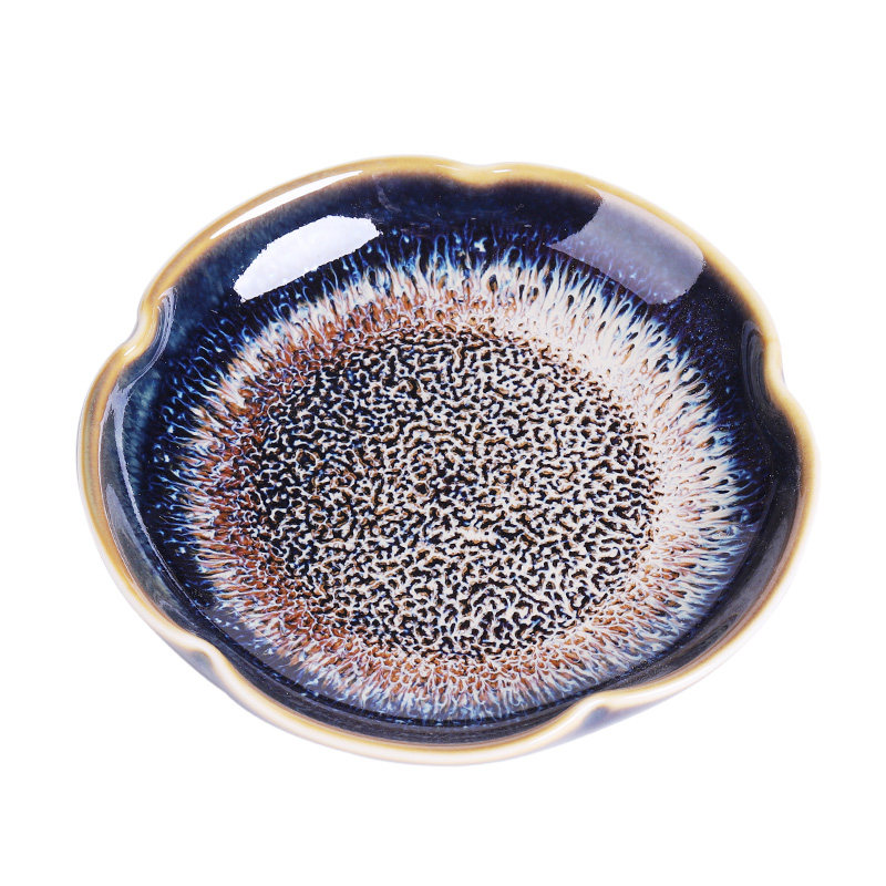 Vintage style ceramic Gongfu tea cup mat Anti-scalding kiln change Tianmu glaze tea tray Insulation mat Chinese Tea Ceremony spare parts