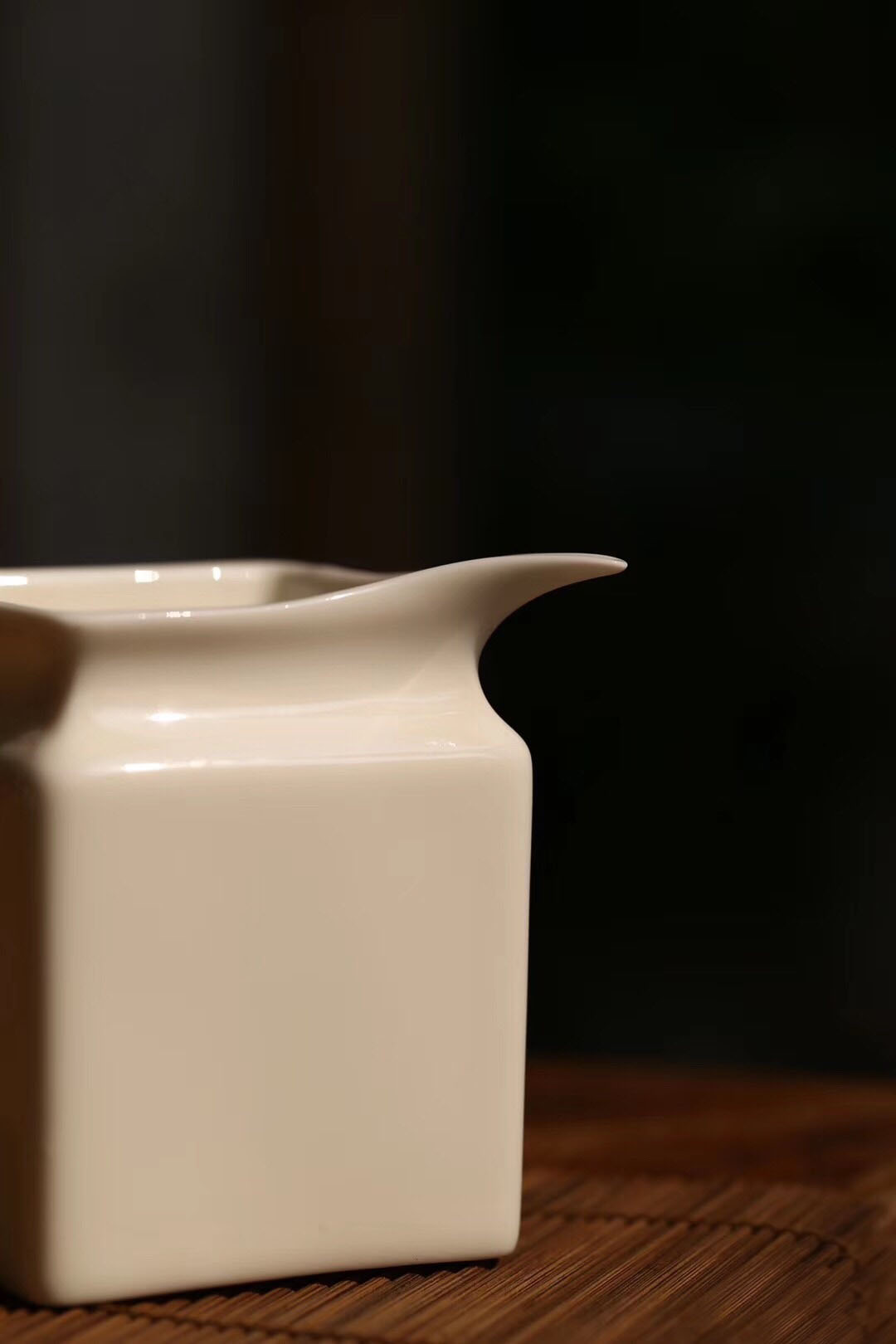 90s Taiwan Custom Defied White Porcelain Quadrilateral Eagle Mouth Justice Cup Ming Plum Glazed water moisturizes water well