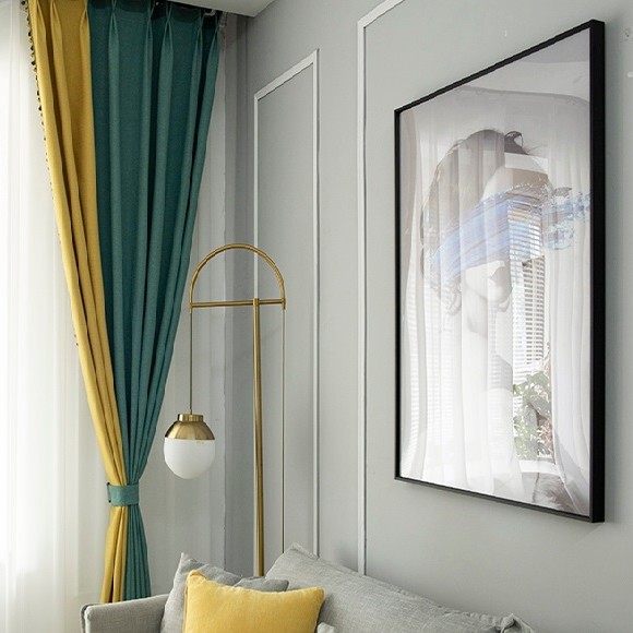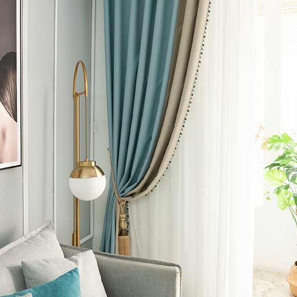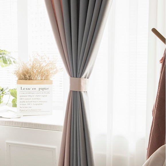 Monica net red curtains Nordic minimalist splicing curtains Painted Curtains cotton linen grey pink Pure Color Living Room Sleeper