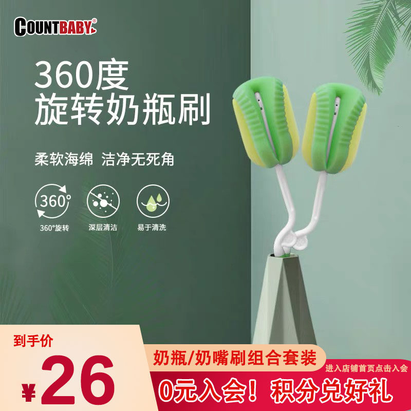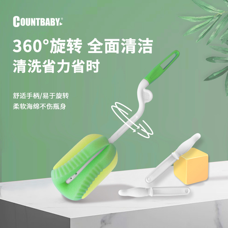 Bottle-brushed Multi-functional washing bottle pacifier 2 pieces of 360-degree rotating sponge nylon brush countbabe Conte