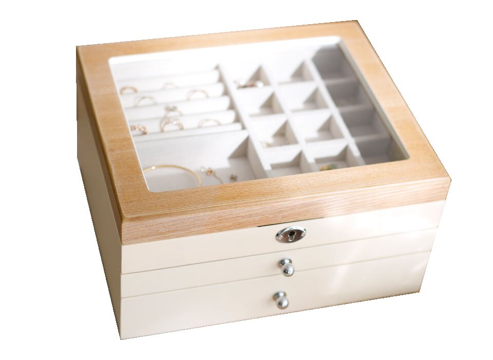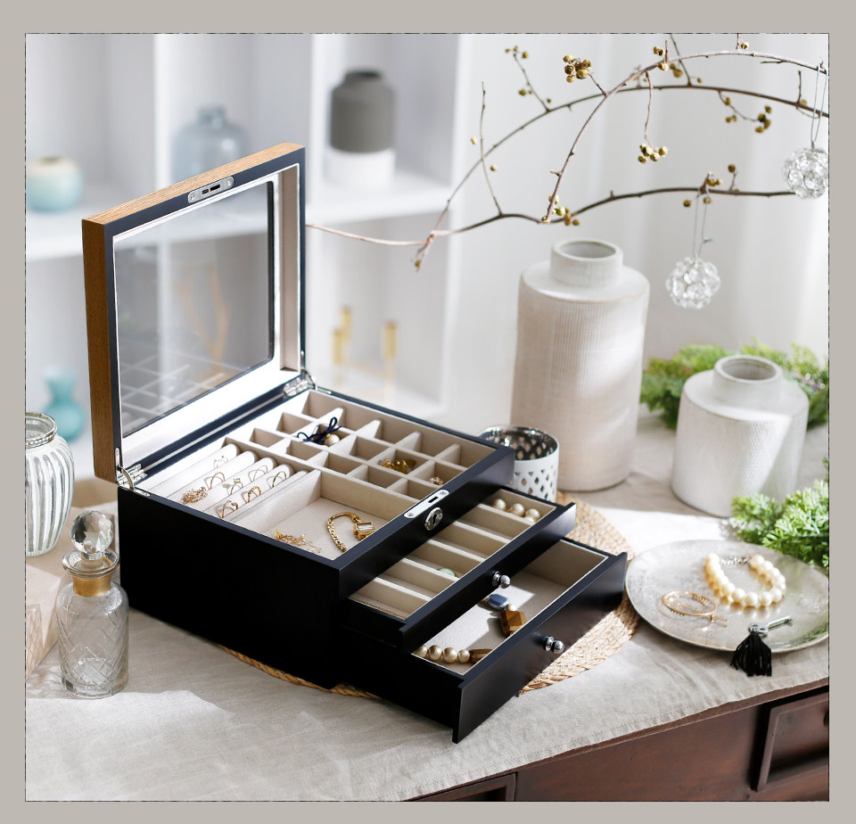 Japanese jewelry box Multi-layer high-grade earrings necklace Hand jewelry storage box box will be dust-proof carrying lock Wooden gift