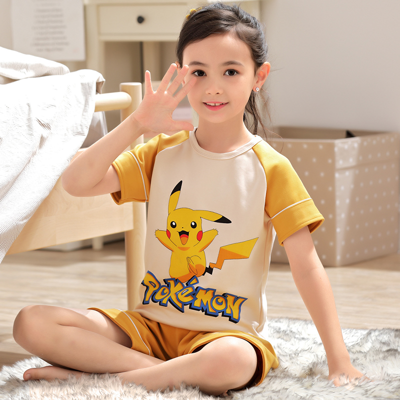 Girls pajamas summer short-sleeved cotton girl princess baby thin section medium and large children's home clothes children's suit Nezha